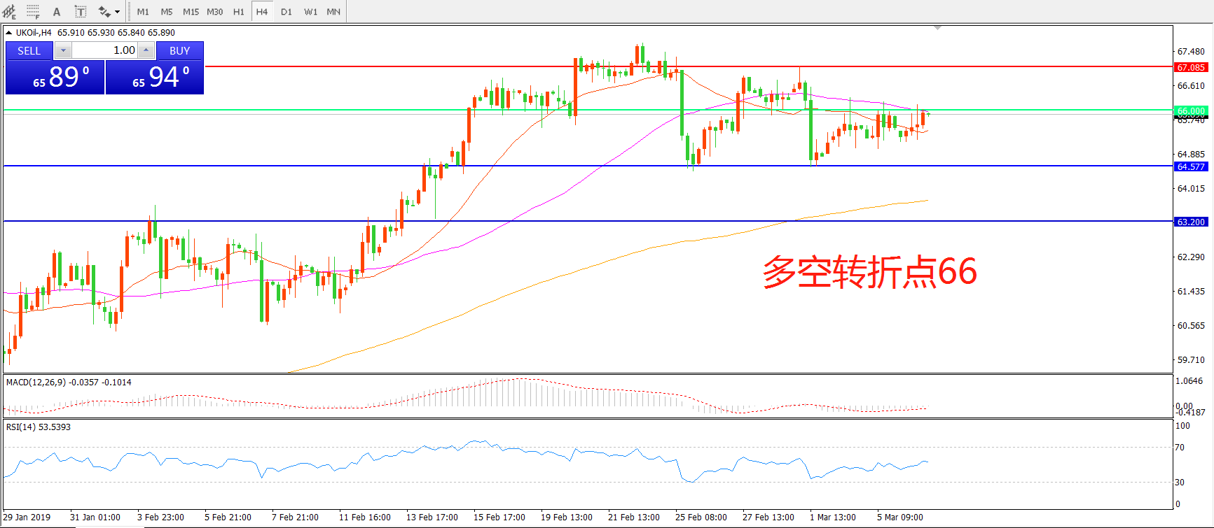 交易策略:在66.00之下看跌,目标64.50    63.00