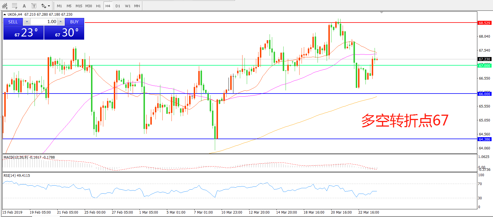 交易策略: 在67.00之下看跌,目标66.00    64.00