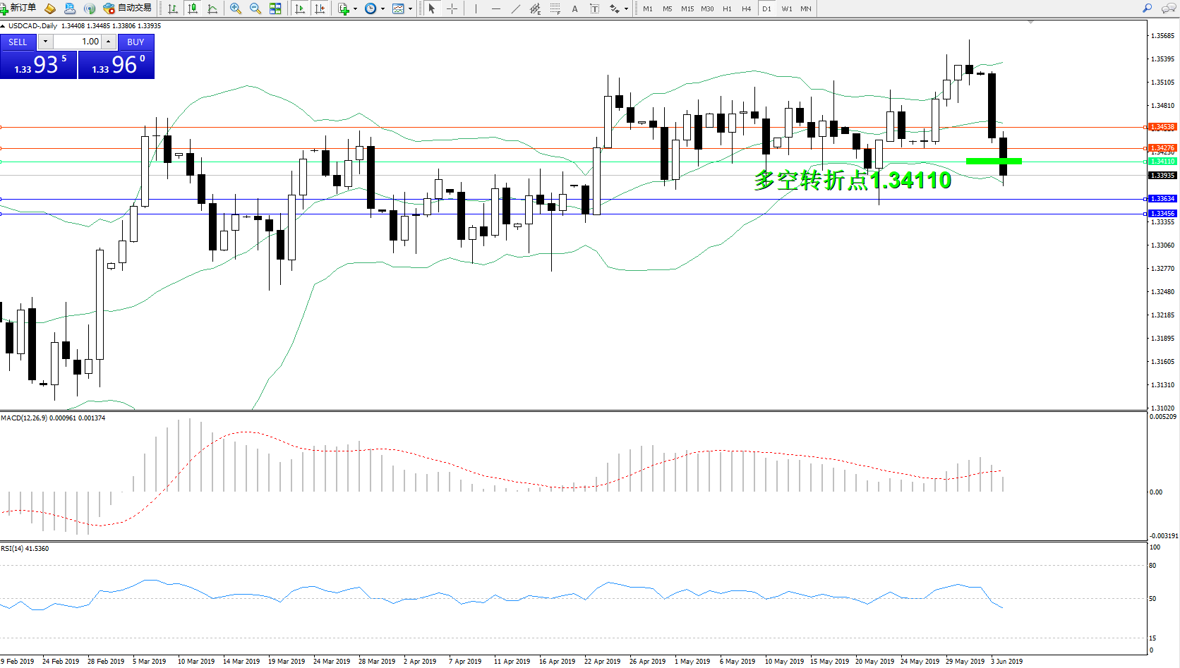 交易策略:1.34110下方看跌,目标1.33634、1.33456