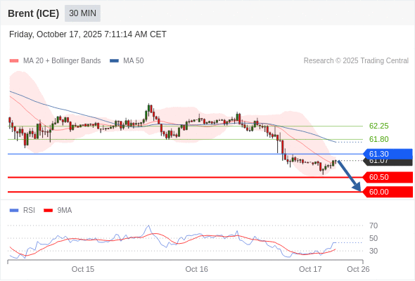在 61.30 之下,看跌,目标价位为 60.50 ,然后为 60.00 。