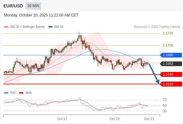 交易策略: 在 1.1680 之下,看跌,目标价位为 1.1640 ,然后为 1.1620 。
