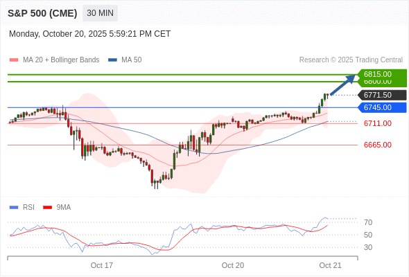 在 6745.00 之上,看涨,目标价位为 6800.00 ,然后为 6815.00 。