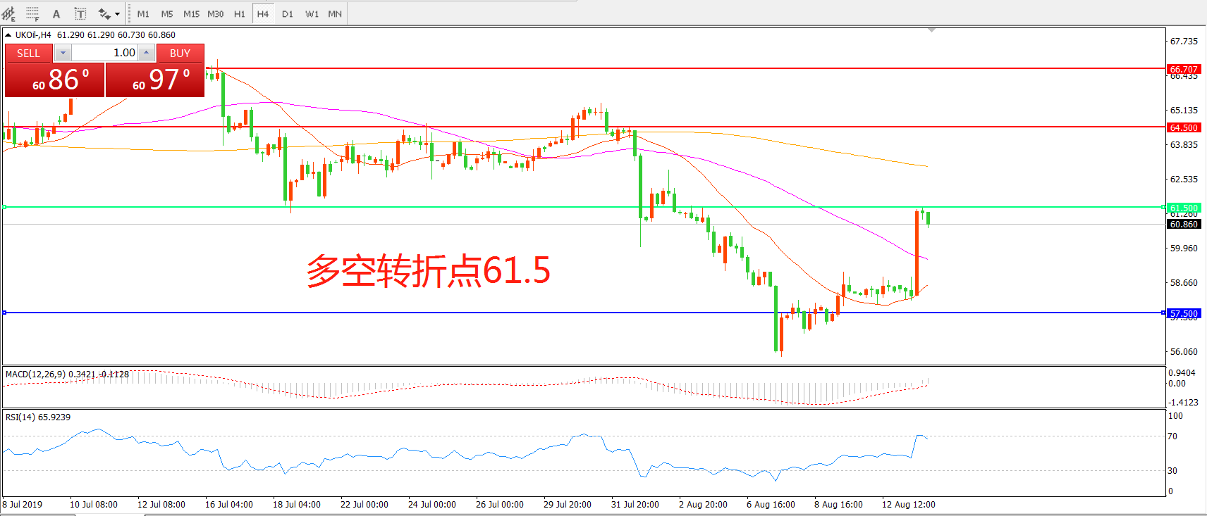 多空转折点:61.50