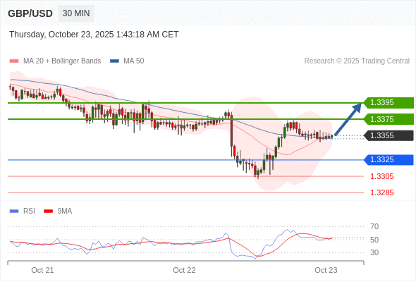 在 1.3325 之上,看涨,目标价位为 1.3375 ,然后为 1.3395 。