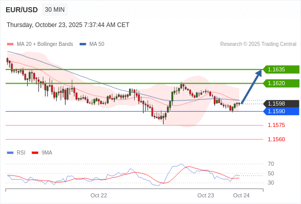 在 1.1590 之上,看涨,目标价位为 1.1620 ,然后为 1.1635 。