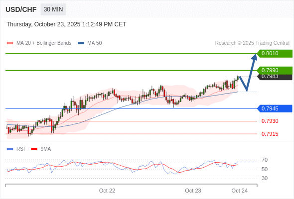 在 0.7945 之上,看涨,目标价位为 0.7990 ,然后为 0.8010 。