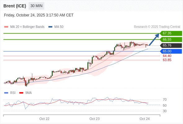 布伦特原油 (ICE) (Z5) 当日内: 在65.00之上,看涨。