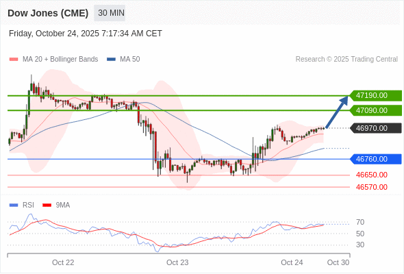 在 46760.00 之上,看涨,目标价位为 47090.00 ,然后为 47190.00 。