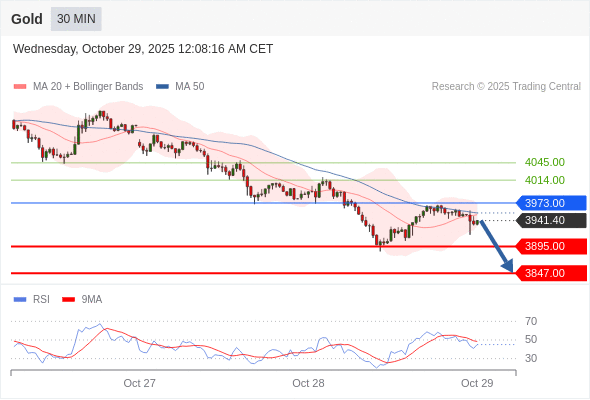 在 3973.00 之下,看跌,目标价位为 3895.00 ,然后为 3847.00 。