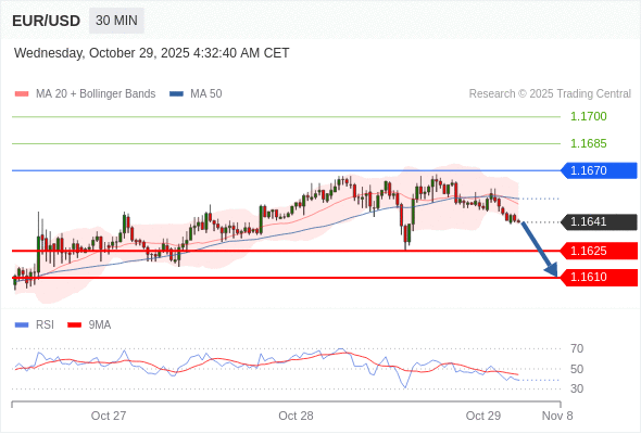 在 1.1670 之下,看跌,目标价位为 1.1625 ,然后为 1.1610 。