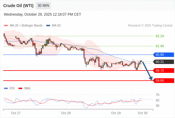 在 60.80 之下,看跌,目标价位为 59.70 ,然后为 59.00 。