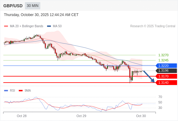 在 1.3220 之下,看跌,目标价位为 1.3170 ,然后为 1.3140 。