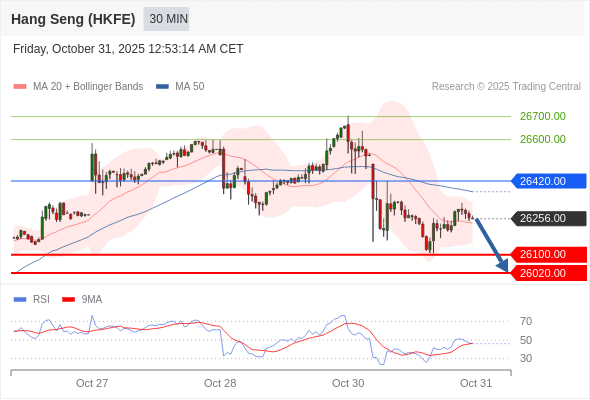 在 26420.00 之下,看跌,目标价位为 26100.00 ,然后为 26020.00 。