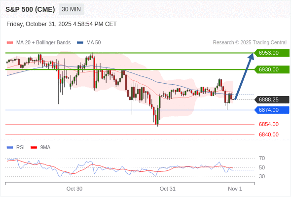 在 6874.00 之上,看涨,目标价位为 6930.00 ,然后为 6953.00 。