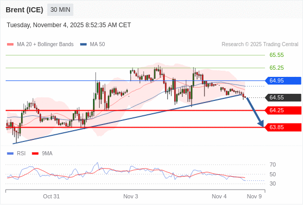 在 64.95 之下,看跌,目标价位为 64.25 ,然后为 63.85 。