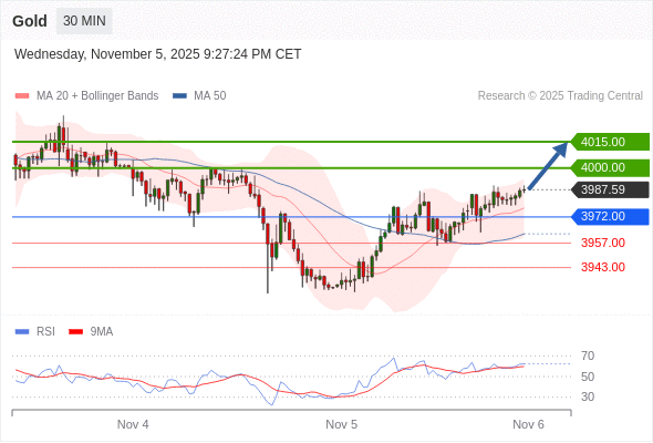 在 3972.00 之上,看涨,目标价位为 4000.00 ,然后为 4015.00 。