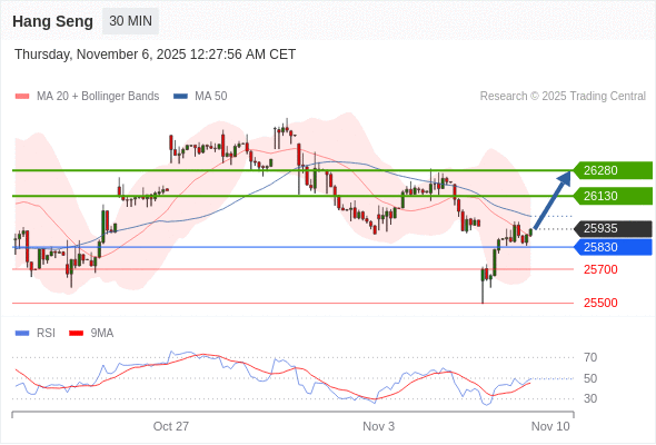 在 25830 之上,看涨,目标价位为 26130 ,然后为 26280 。