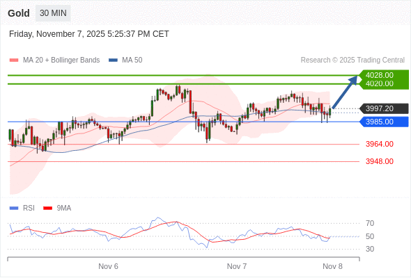 在 3985.00 之上,看涨,目标价位为 4020.00 ,然后为 4028.00 。