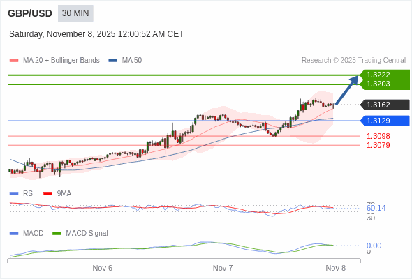 交易策略: 看涨,当 1.3129 为支撑位,目标定在1.3222。