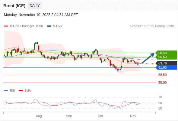 在 61.90 之上,看涨,目标价位为 66.60 ,然后为 68.50 。