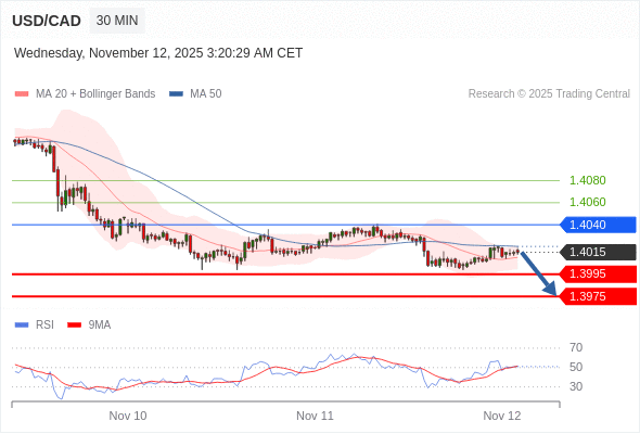 在 1.4040 之下,看跌,目标价位为 1.3995 ,然后为 1.3975 。