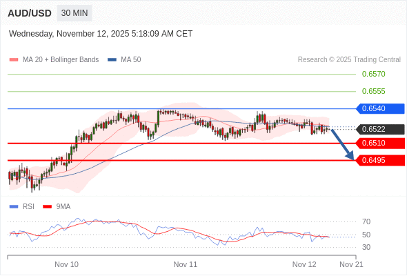 在 0.6540 之下,看跌,目标价位为 0.6510 ,然后为 0.6495 。