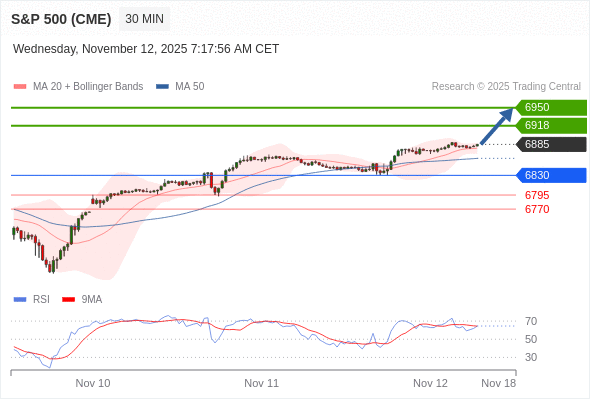 在 6830 之上,看涨,目标价位为 6918 ,然后为 6950 。