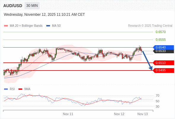 在 0.6540 之下,看跌,目标价位为 0.6510 ,然后为 0.6495 。