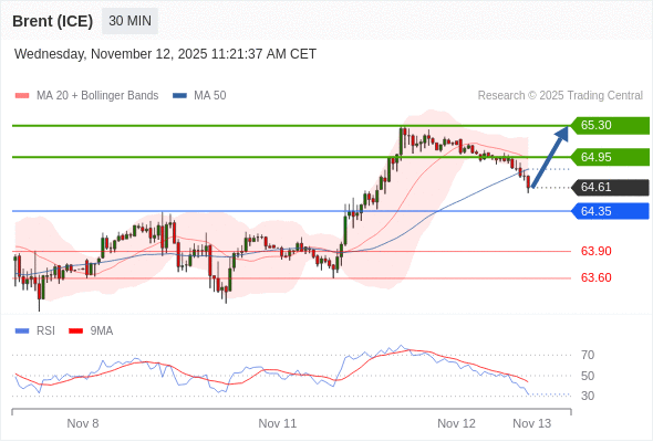 在 64.35 之上,看涨,目标价位为 64.95 ,然后为 65.30 。