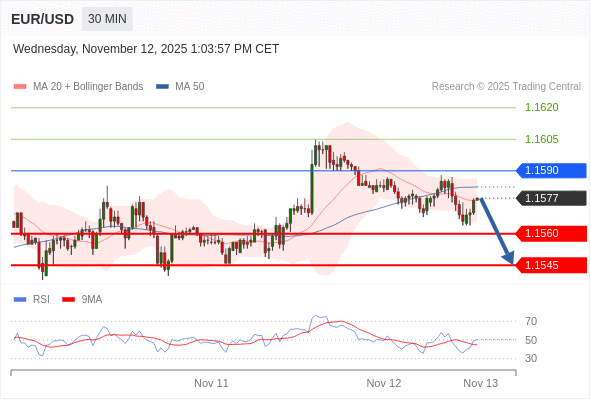 在 1.1590 之下,看跌,目标价位为 1.1560 ,然后为 1.1545 。