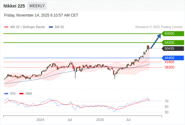 在 44400 之上,看涨,目标价位为 54300 ,然后为 60000 。