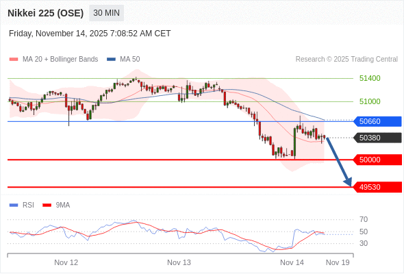 在 50660 之下,看跌,目标价位为 50000 ,然后为 49530 。
