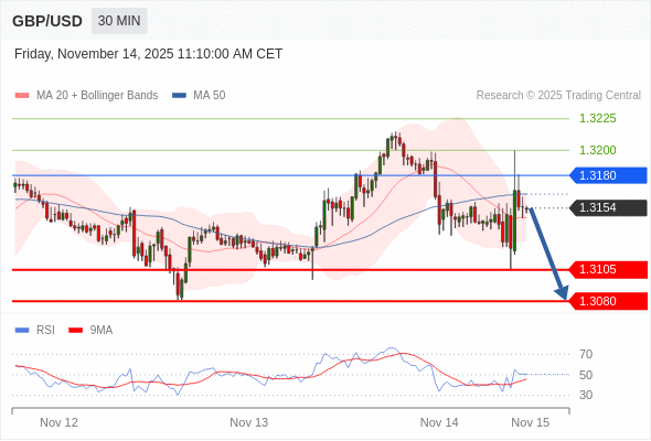 在 1.3180 之下,看跌,目标价位为 1.3105 ,然后为 1.3080 。