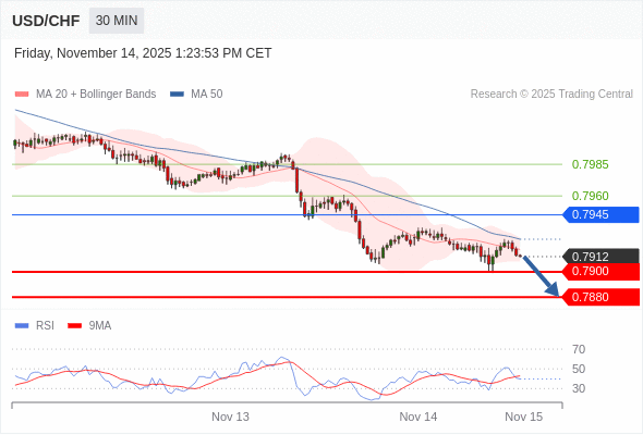 美元/瑞郎 当日内: 短期关键阻力位在0.7945。