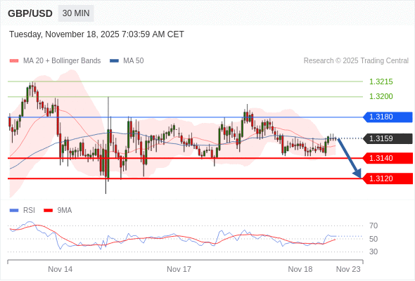 在 1.3180 之下,看跌,目标价位为 1.3140 ,然后为 1.3120 。