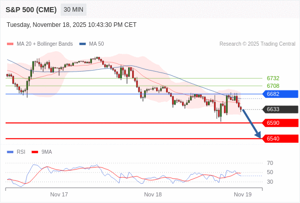 在 6682 之下,看跌,目标价位为 6590 ,然后为 6540 。