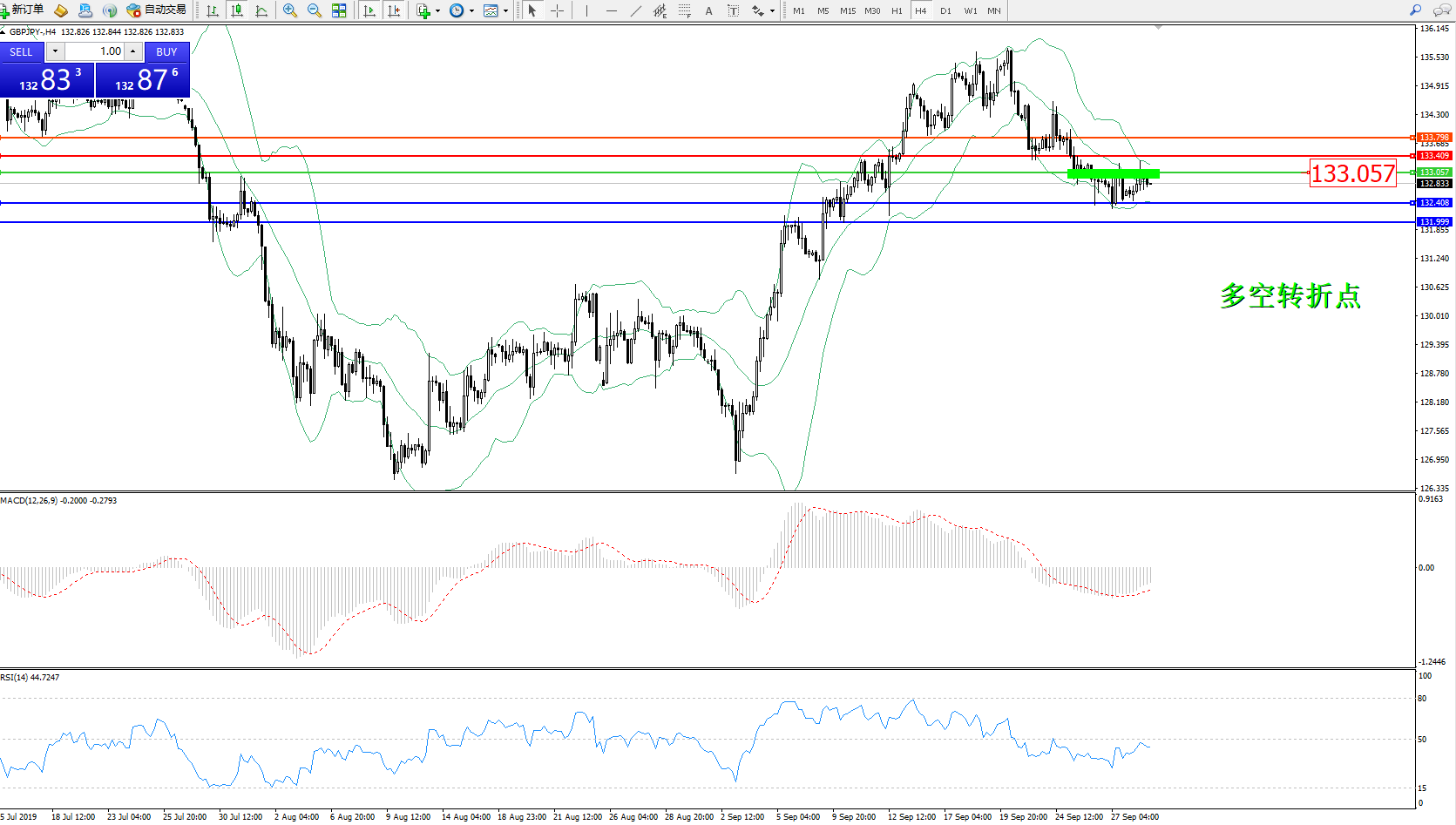 交易策略:133.057下方看跌,目标132.408、131.999
