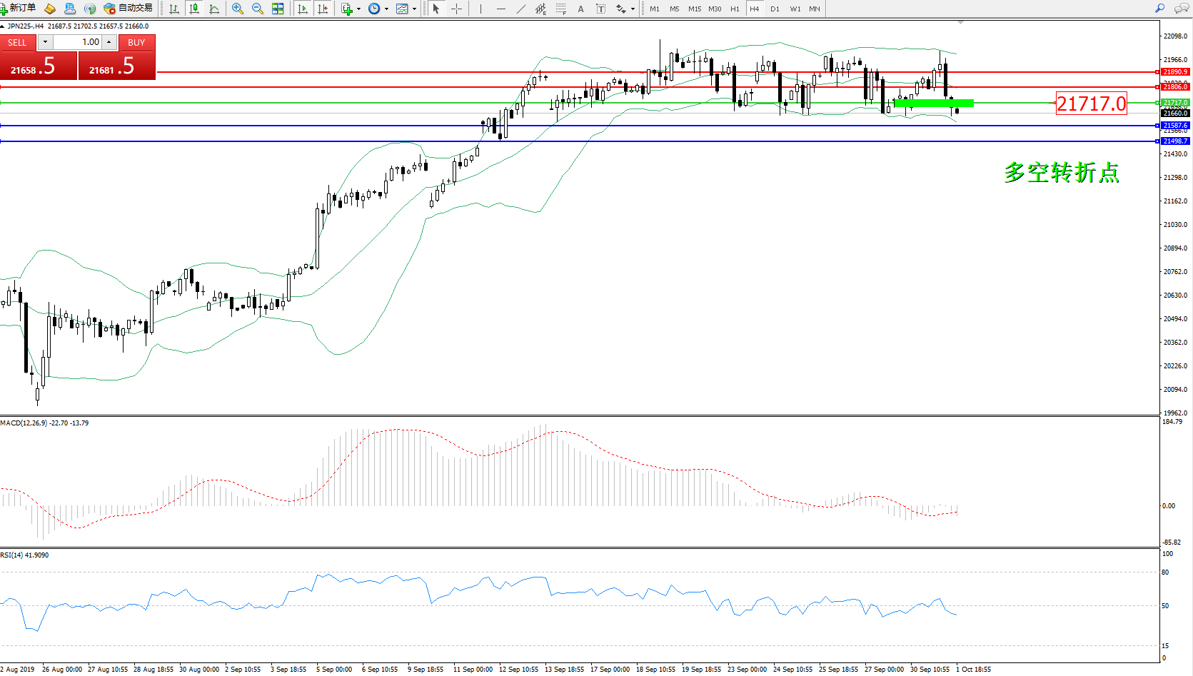 技术点评:高位维持在布林带指标通道内侧持续徘徊数日之久,多空均属于焦灼状态,市场一直在寻找方向,布林带指标下轨附近节点有破位迹象,MACD指标处于0轴线下方弱势徘徊中,RSI指标在空头区域进入多头区域后又出现回撤下行走势;一直纠结于50均衡线附近震荡;