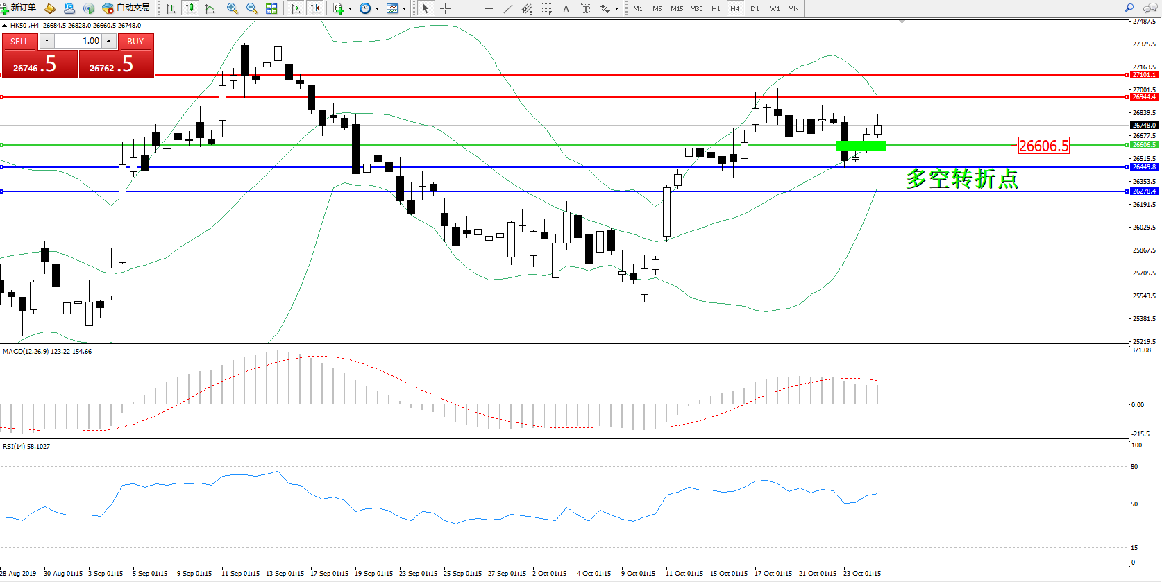 香港恒生指数10月24日(周四)收盘上涨231.22点,涨幅0.87%,报26797.95点;港股早上高开84点后,曾收窄至仅升25点,恒指低见26593。随后虽曾跟A股反弹造好,但成交淡静。英国迅速有序脱欧的前景受到质疑。政治不确定性趋增,或促使投资者避险情绪增加。此外,中美双方“首阶段”贸易协定有望达成,局势稳步缓和,但市场对全球经济仍感忧虑。