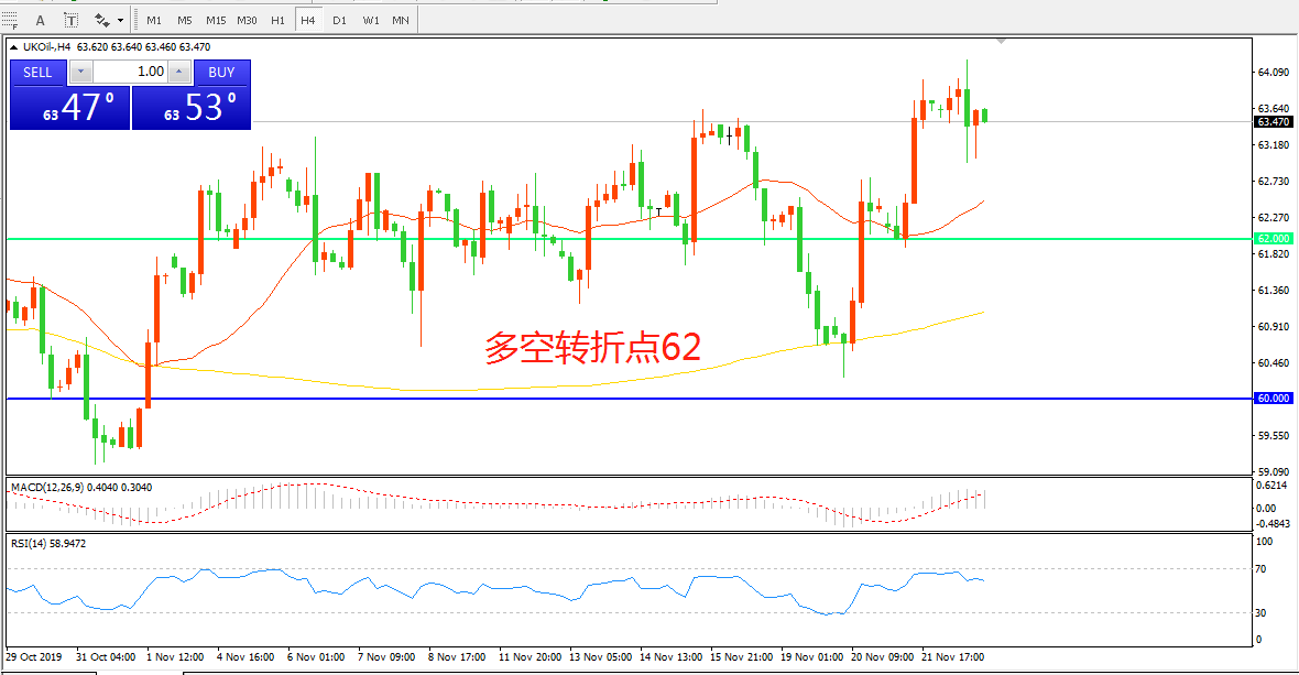交易策略:在62.00之上看涨,目标64.50     66.00