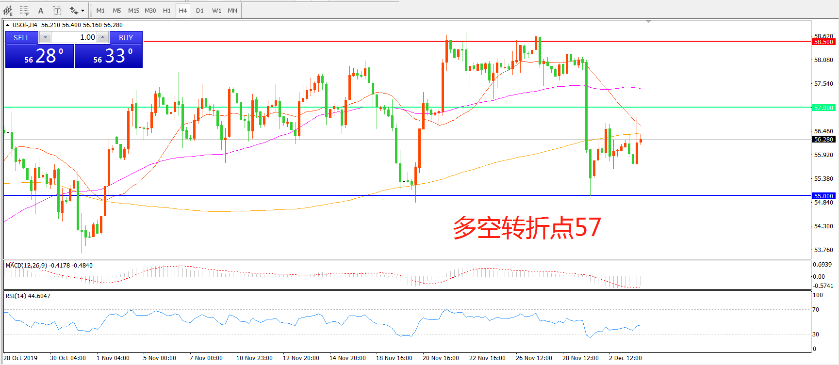 交易策略: 在57.00之下看跌,目标55.00      52.50