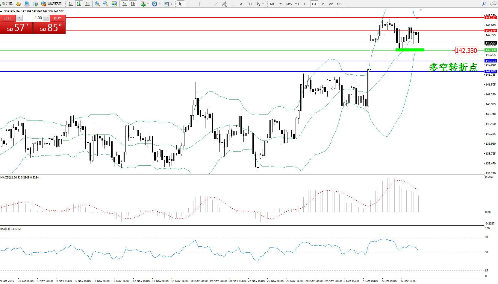 交易策略:142.380上方看涨,目标142.879143.217