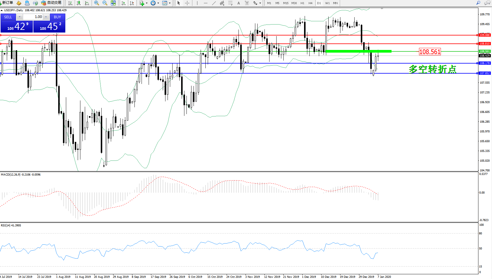 交易策略:108.561下方看跌,目标108.178107.852