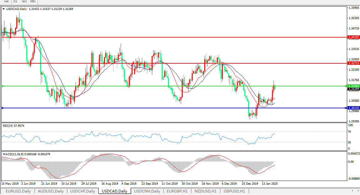 技术面简析:日线图均线逐步走强迹象明显,汇价延续上攻态势触及多空转折区域,MACD开始走升且量能0轴上方微放量,RSI冲高后开始走弱,预计汇价短期大概率将延续整理上行态势,重点关注1.3140附近压制是否持续有效。