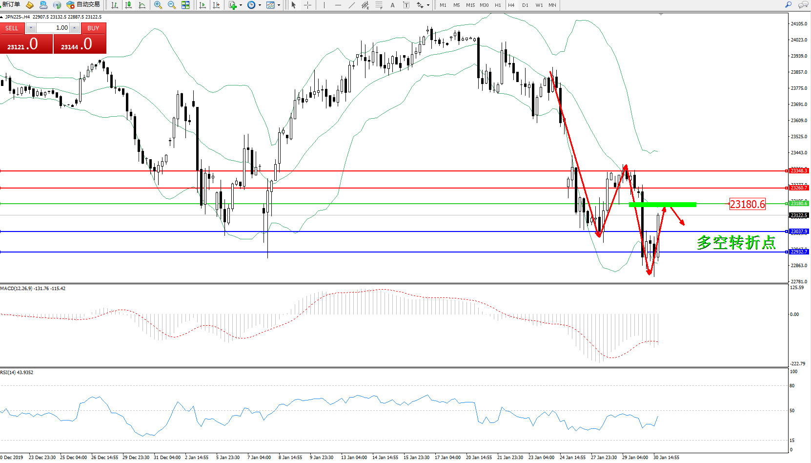 交易策略:23180下方看跌,目标23037、22932