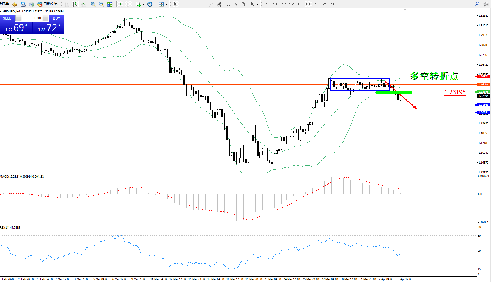 交易策略:1.23195下方看跌,目标1.216611.20754