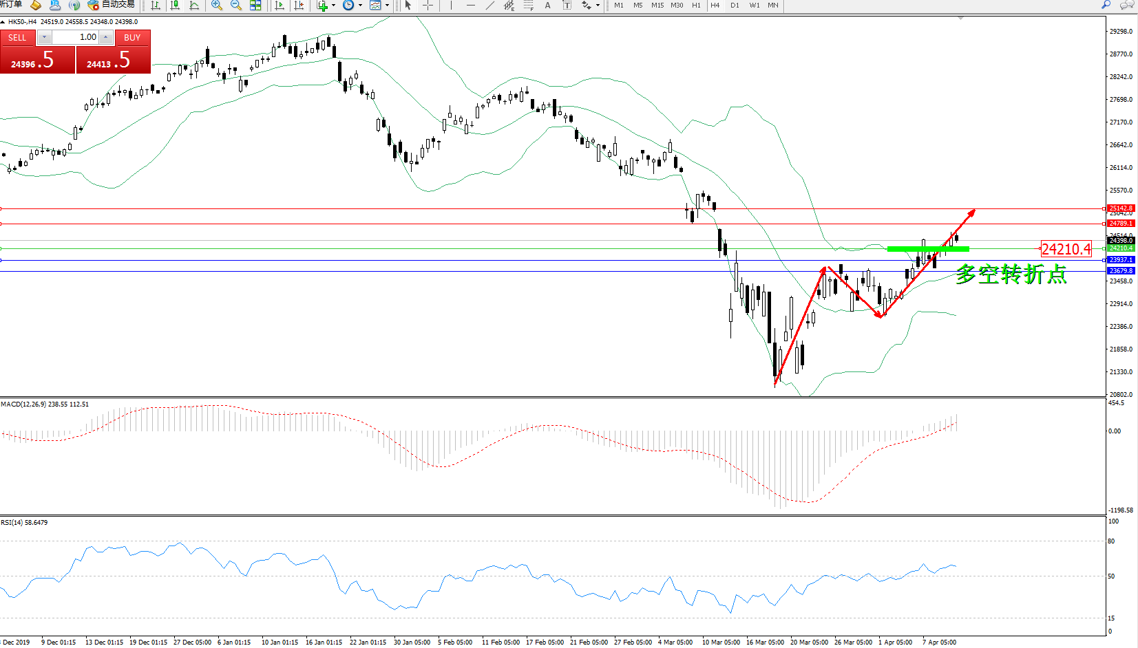 香港恒生指数414日(周二)收盘上涨135.07点,涨幅0.56%,报24435.40点;港股市场呈震荡行情,主要股指皆有涨幅。主板成交量为1114.59亿港元,港股通净流入21.35亿港元。软件股与特斯拉概念强势领涨,重型机械、物管股、电池股、黄金股、建材水泥集体上涨,因传闻中信建投逾中信证券合并,中资券商股午后崛起大涨,股由于全球流动性以及新冠疫情的原因大幅下跌,目前的估值仍处于历史低位,分别在2008年、2016年出现了类似的情况,之后都迎来非常强劲的上涨行情,随着疫情令经济陷入衰退,促使各地央行推出庞大的刺激计划,市场担心新冠病毒大流行将对全球经济造成毁灭性影响,冲击企业收益,同时增加对避险资产的需求。
