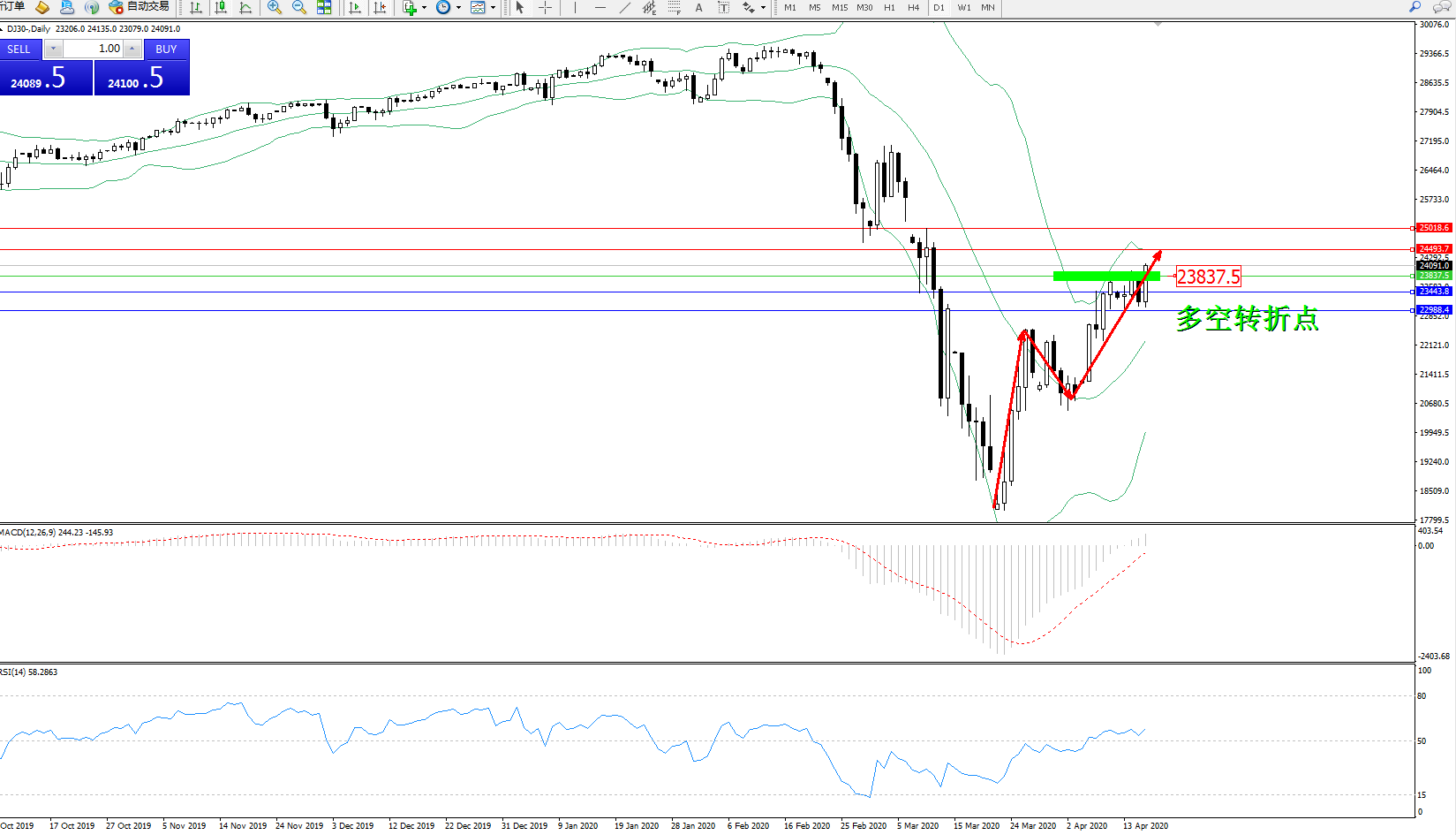道琼斯指数4月16日(周四)收盘上涨33.30点,涨幅0.14%,报23537.68点。特朗普制定了各州分三阶段重启经济的指引,规定了各州必须满足的检测标准,要求迅速提供防护装备以便重新开放。各州州长可根据本州情况执行指引,而不依赖于联邦政府的命令。这份指引名为“再次开放美国”,尚未正式公布,特朗普已经向各州州长分发了文件。呼吁在“第一阶段”继续尽可能远程办公、分阶段复工、减少非必要旅行、并保持社交距离措施;在“第二阶段”(疫情无反弹迹象的州)可恢复不必要旅行,学校和有组织的青年活动可重新开放,在采取社交距离措施的情况下可重新开放酒吧、体育馆和大型场所。在“第三阶段”,脆弱人群可恢复搭乘公共交通,但应保持距离,低风险人群应考虑尽量减少在人群密集区的停留时间。