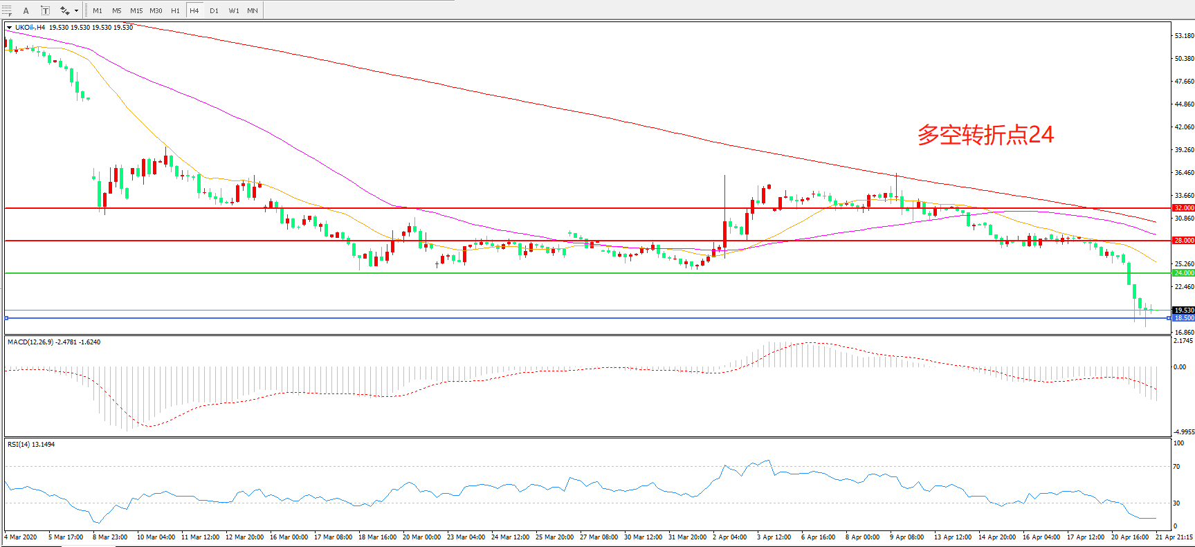 周二(4月21日)油价崩溃势头扩散,空头继续利用库存不足的问题,重演前一天的崩盘行情,布油最深跌幅逾30%,最终收报19.50美元/桶。但与WTI不同的是,布伦特原油是北海海上合约,相较于WTI必须要交割于深锁内陆的库欣,拥有更大的仓储灵活性,同时金融属性也远低于WTI原油。