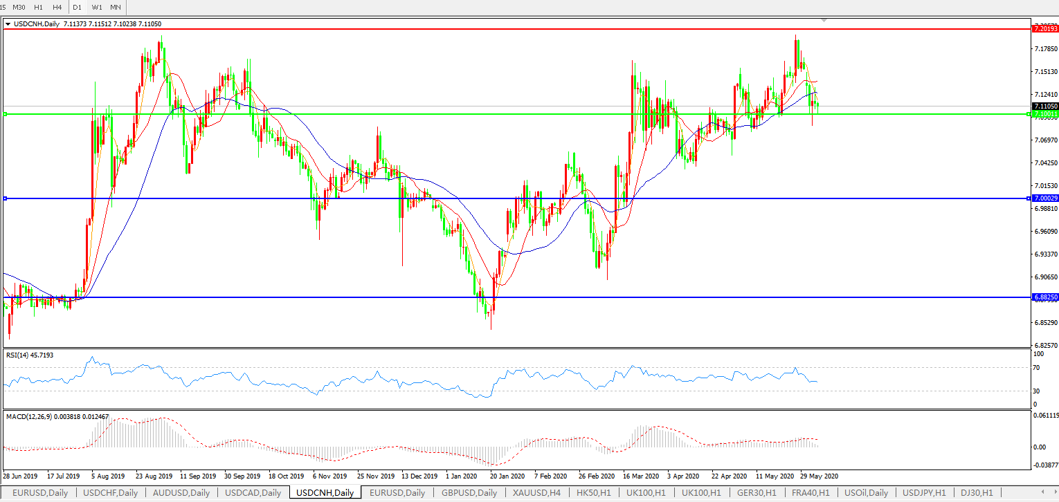 交易策略: 在7.1000之上,看涨,目标价位为7.2000,然后为7.3000。